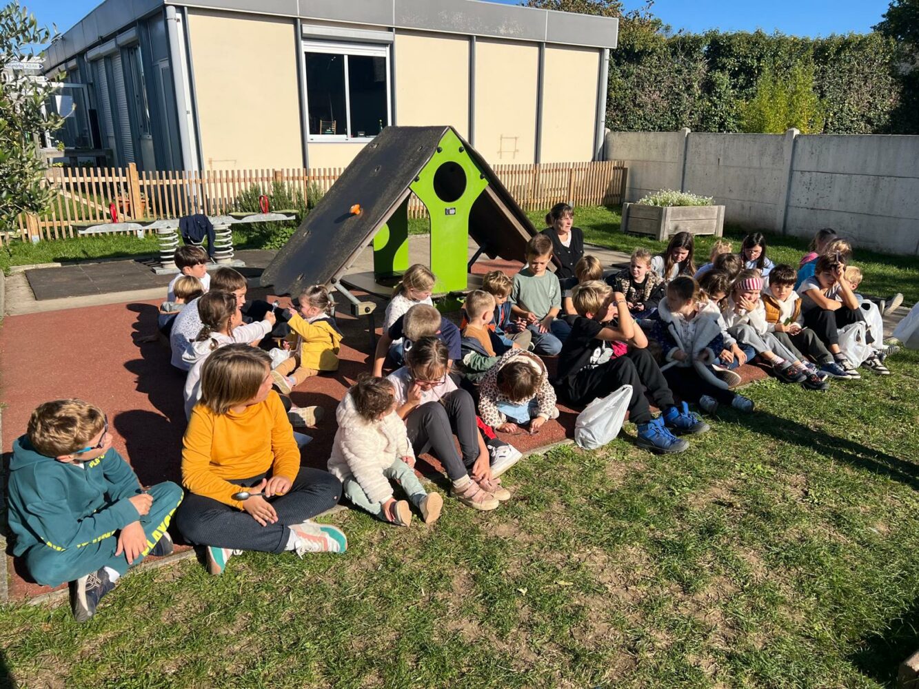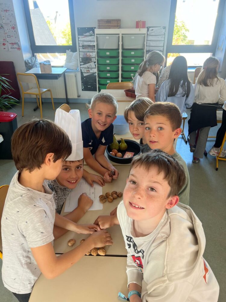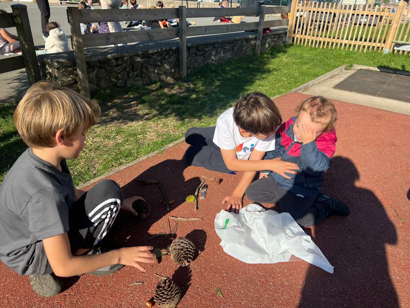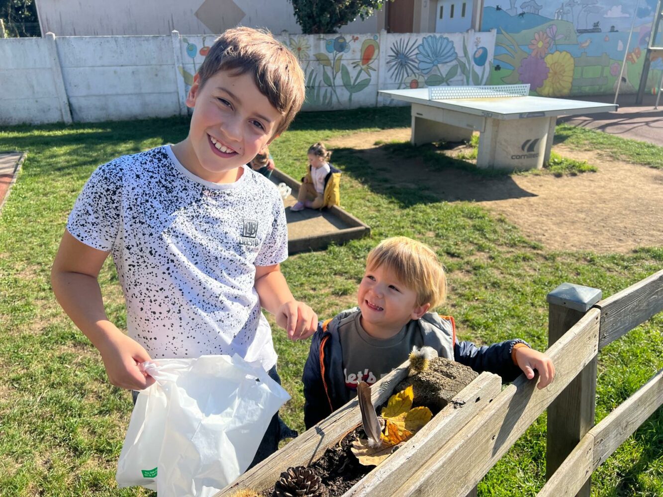 Cuisine, randonnée, land’art, goûter…Les élèves de PS/MS et CE2/CM1 ont célébré l’automne sous un beau soleil. Cette collaboration entre nos deux classes permet de développer de belles complicités!