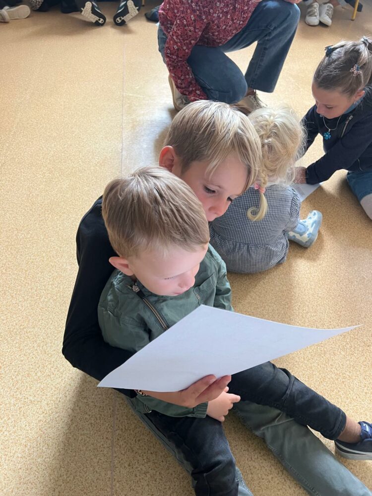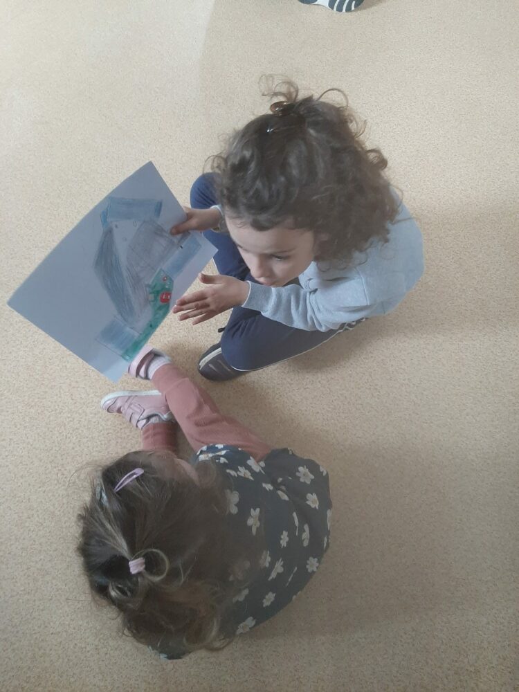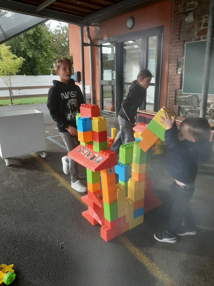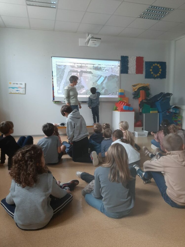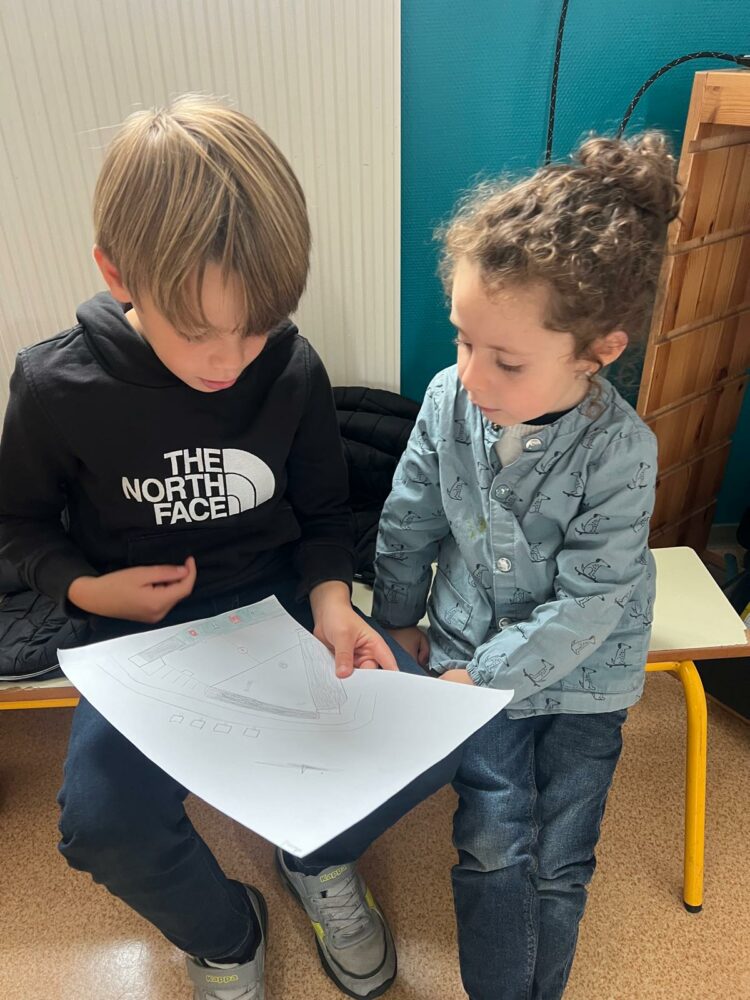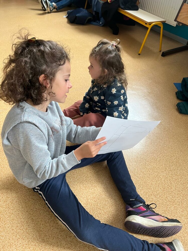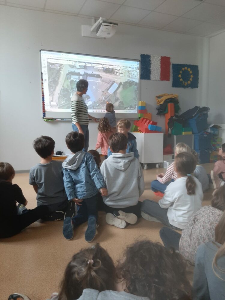 Ce matin, les élèves de PS/MS et de CE2/CM1 se sont retrouvés pour vivre ensemble une deuxième séance autour de l’espace- école… Après la lecture d’un album par Isabelle et une récréation- construction animée par les grands, nous avons travaillé sur le plan de l’école vue de dessus. D’abord, à partir d’une photo satellite, et ensuite à partir du plan dessiné par chacun des élèves de CE2/CM1. Les petits ont pu reconnaître les lieux et les grands animer un jeu de repérage… C’était une nouvelle fois un beau moment de partage et l’occasion d’être admiratives des compétences de chacun.