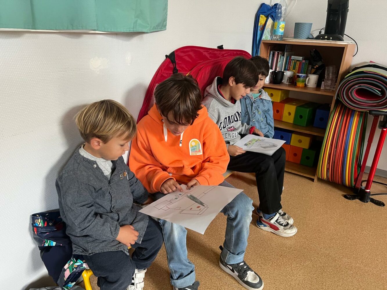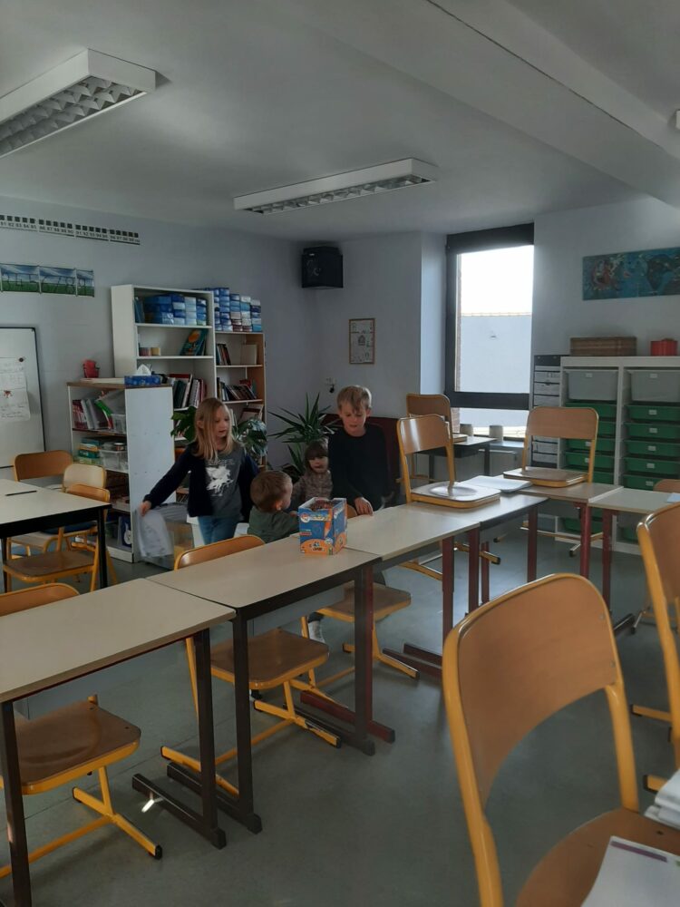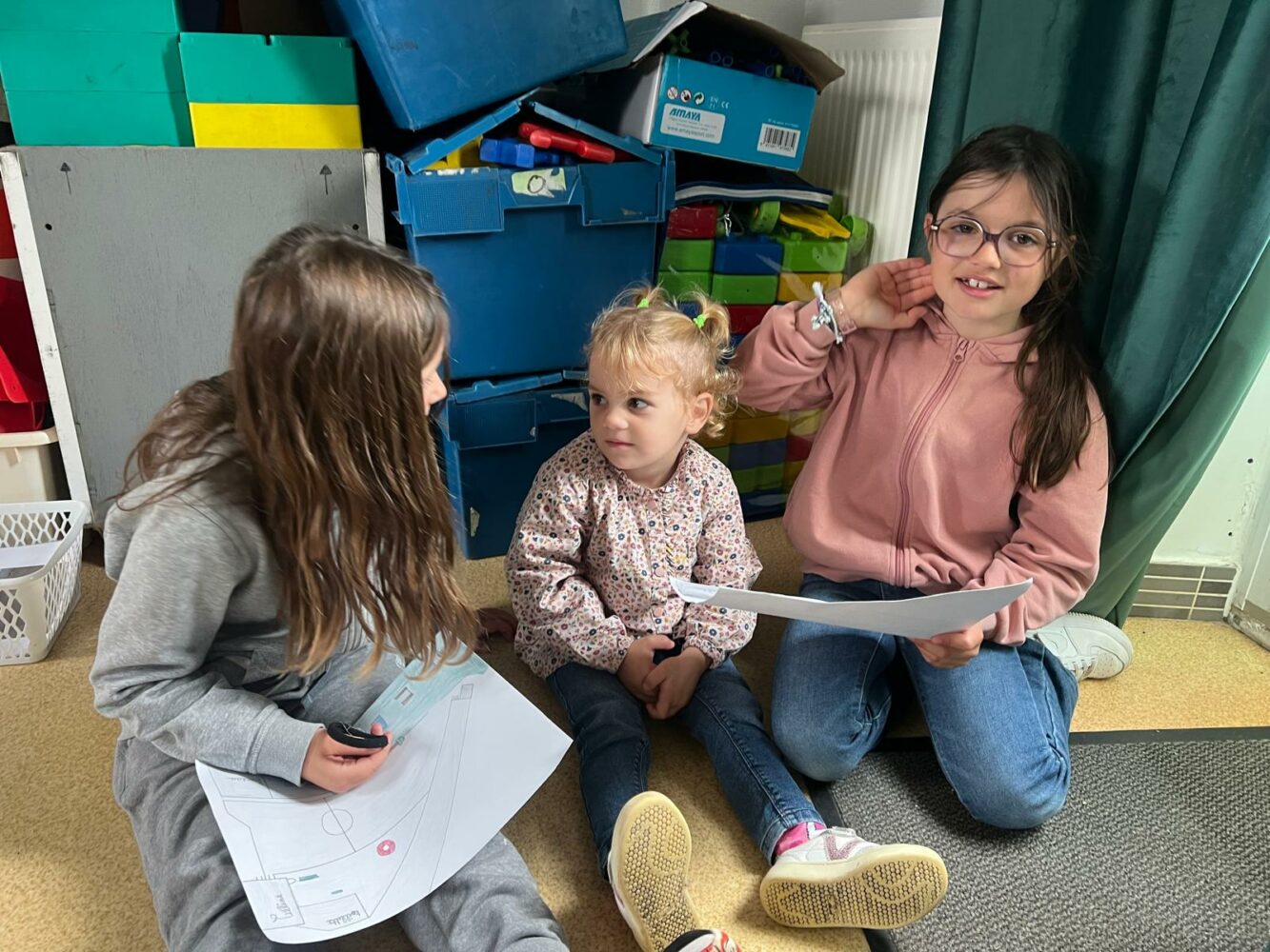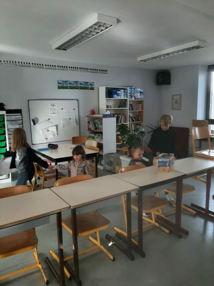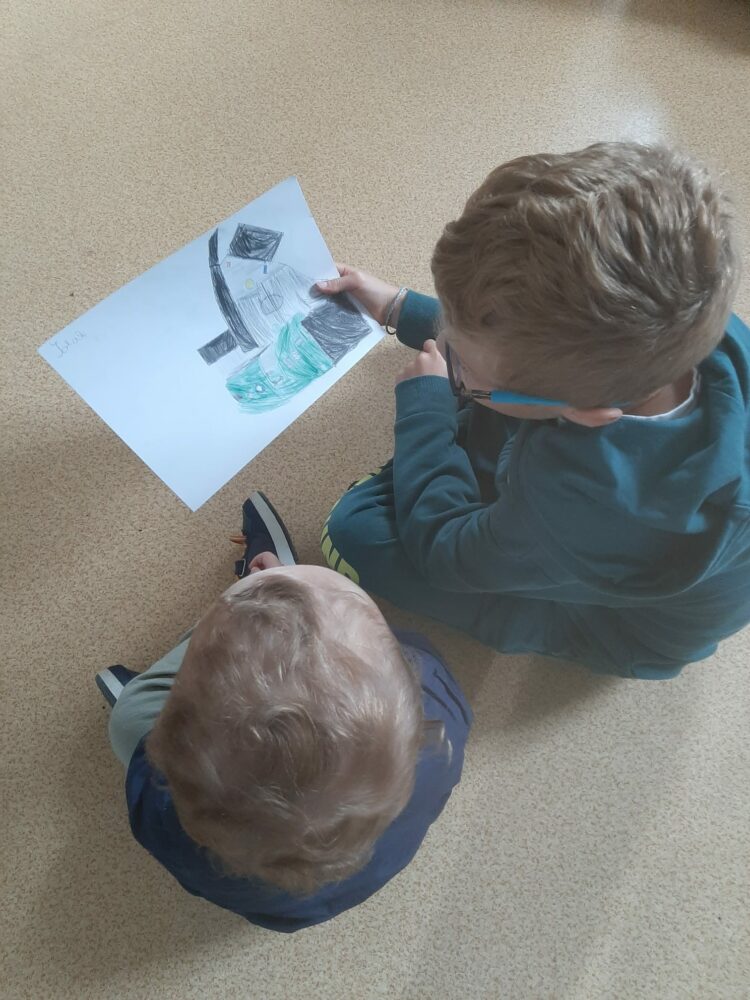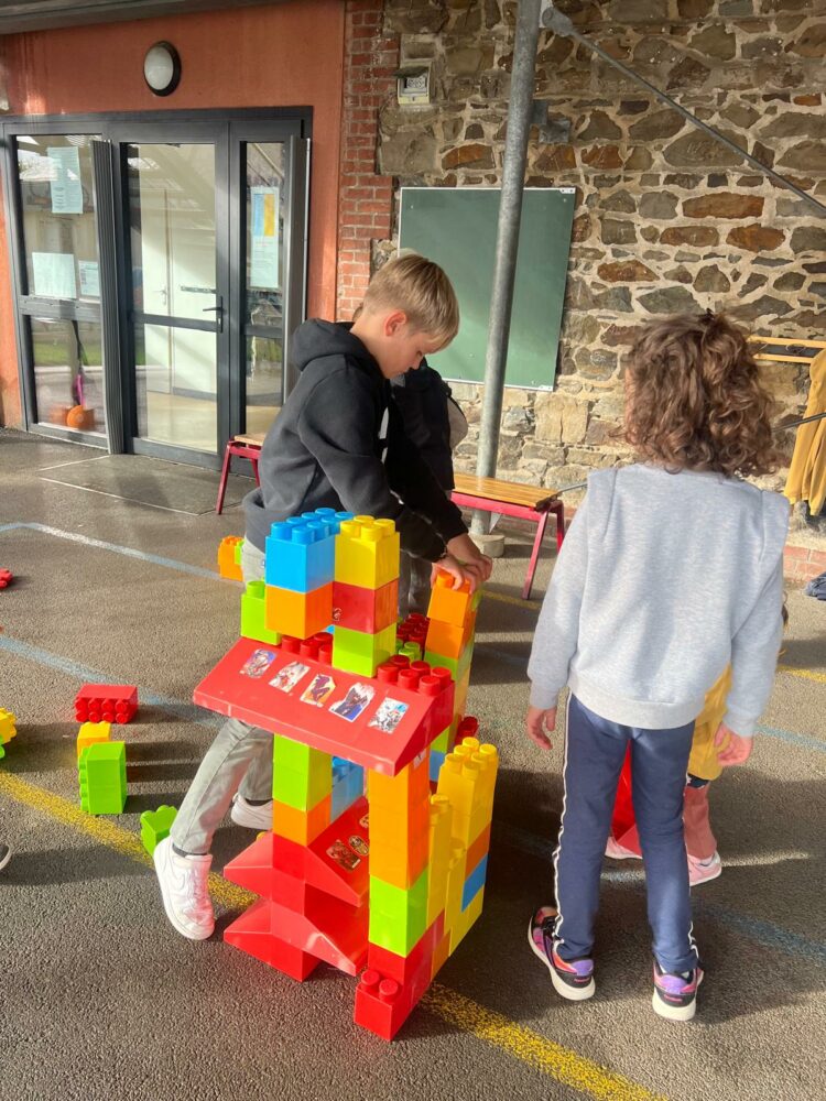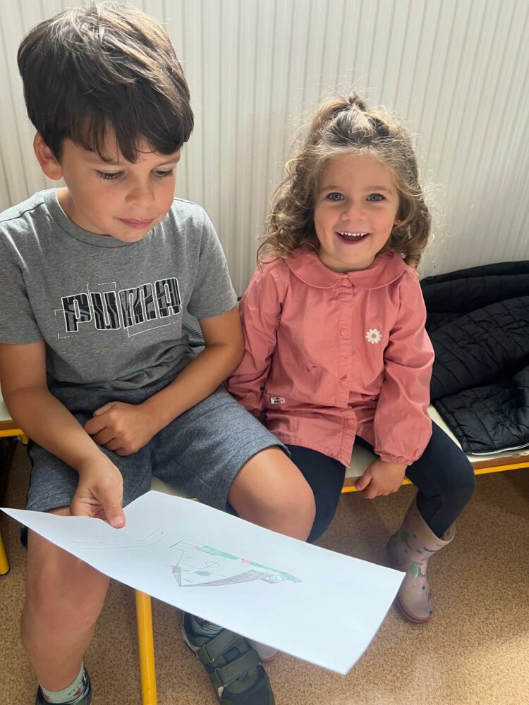 Ce matin, les élèves de PS/MS et de CE2/CM1 se sont retrouvés pour vivre ensemble une deuxième séance autour de l’espace- école… Après la lecture d’un album par Isabelle et une récréation- construction animée par les grands, nous avons travaillé sur le plan de l’école vue de dessus. D’abord, à partir d’une photo satellite, et ensuite à partir du plan dessiné par chacun des élèves de CE2/CM1. Les petits ont pu reconnaître les lieux et les grands animer un jeu de repérage… C’était une nouvelle fois un beau moment de partage et l’occasion d’être admiratives des compétences de chacun.