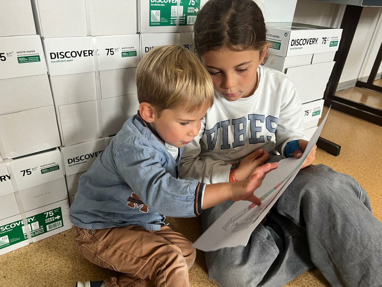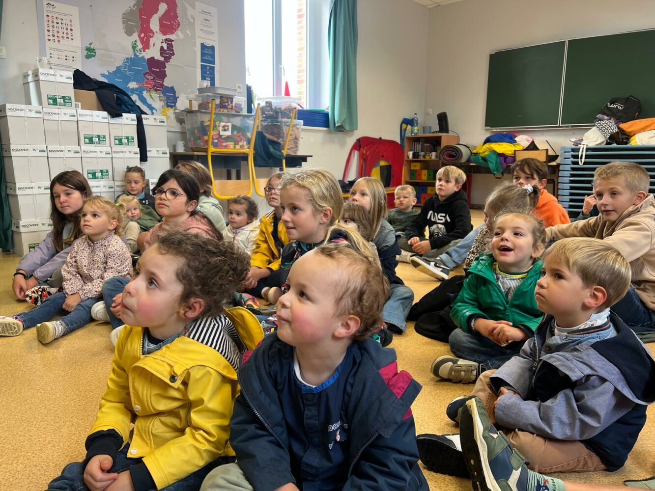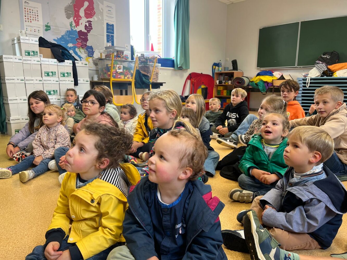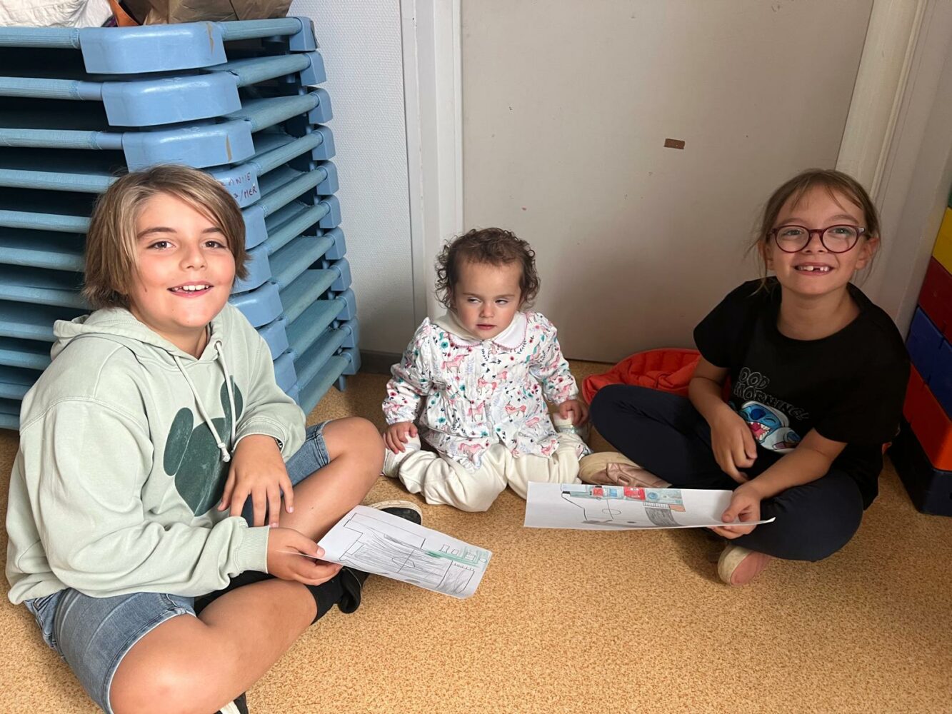 Ce matin, les élèves de PS/MS et de CE2/CM1 se sont retrouvés pour vivre ensemble une deuxième séance autour de l’espace- école… Après la lecture d’un album par Isabelle et une récréation- construction animée par les grands, nous avons travaillé sur le plan de l’école vue de dessus. D’abord, à partir d’une photo satellite, et ensuite à partir du plan dessiné par chacun des élèves de CE2/CM1. Les petits ont pu reconnaître les lieux et les grands animer un jeu de repérage… C’était une nouvelle fois un beau moment de partage et l’occasion d’être admiratives des compétences de chacun.